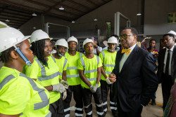 « Pour nous, à la Banque africaine de développement, une grande partie de notre travail concerne les infrastructures. C’est ce que je vois ici — vous devez pouvoir disposer d’énergie à moindre coût, afin que votre coût unitaire de production soit bas », a-t-il souligné. « Les véhicules électriques fonctionnent à l’électricité — et c’est pourquoi à la Banque africaine de développement, au cours des dix dernières années, nous avons raccordé plus de 28 millions de personnes à l’électricité, en investissant massivement dans l’énergie. »