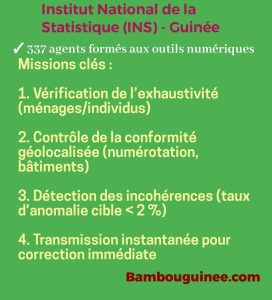 RGPH-4 : 337 agents déployés par l’Institut National de la Statistique pour valider la couverture à 99 % du recensement guinéen