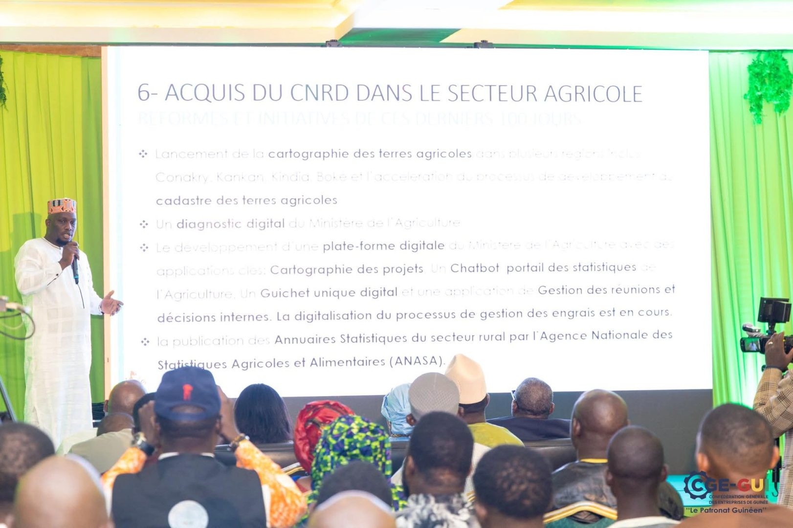 La Confédération Générale des Entreprises de Guinée (CGE-GUI) a activement participé, ce mardi 25 novembre 2025, à la cérémonie de présentation des réformes, des acquis et des perspectives du secteur agricole, organisée par le Ministère de l’Agriculture.