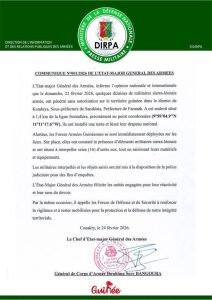 L’État-major général des Armées guinéennes a publié un communiqué officiel ce mardi pour détailler un incident frontalier survenu dimanche dernier dans la préfecture de Faranah.