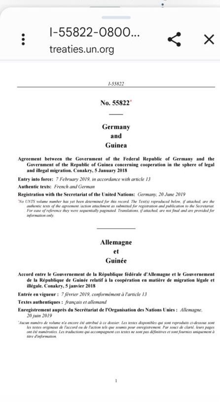 Pour gérer ces flux et la criminalité associée, l’Allemagne et la Guinée ont signé un accord clé en 2018 : l’Accord entre le Gouvernement de la République Fédérale d’Allemagne et le Gouvernement de la République de Guinée concernant la coopération dans le domaine de la migration légale et illégale ». Signé à Conakry le 5 janvier 2018 et entré en vigueur le 7 février 2019, cet accord vise à intensifier la coopération sur la migration légale, faciliter les retours volontaires et soutenir les déportations. Il couvre l’échange d’informations, l’établissement de la nationalité et la délivrance de laissez-passer consulaires par l’ambassade guinéenne.