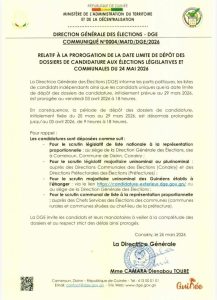 Cette prolongation intervient dans un contexte de préparation active du scrutin du 24 mai, considéré comme une étape clé dans le processus démocratique en Guinée.